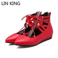 LIN KING Sexy Cross Bandage Gladiator Women Flats Shoes Casual Pointed Soft Leather Zippers Solid Princess Wedding Party Shoes USD 21.00-23.00/piece
