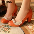 LIN KING Mori Girl Pumps Sweet Bowtie Square Chunky Heels Lace Shoes Women Shallow Mouth Platforms Pumps Slip On Wedding ShoesUSD 22.30/piece