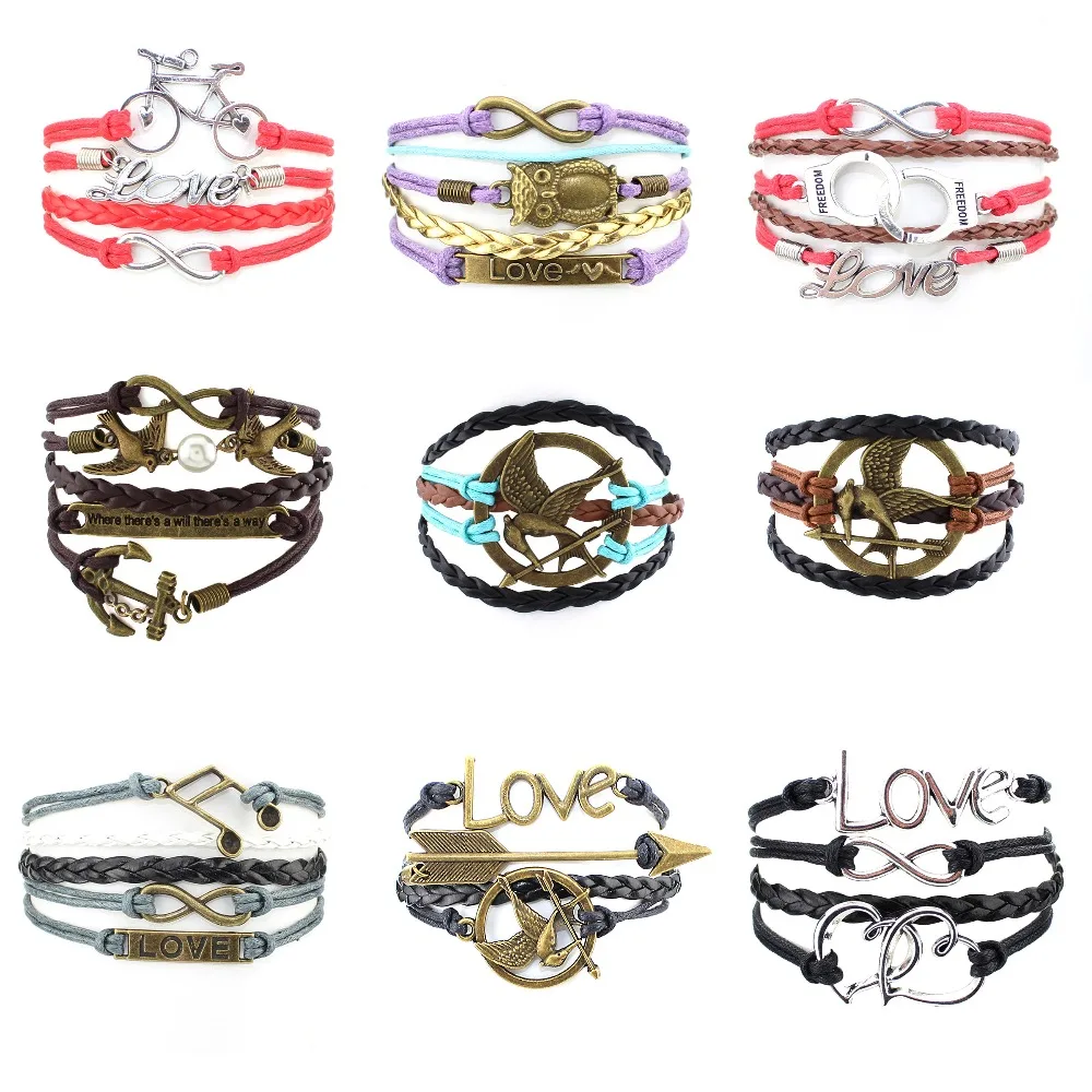 2017 New Fashion Jewelry Chain Froze Girls Elsa Anna Heart Charm Bracelet Cartoon Kids Gift Leather Braid Bangles free shipping
