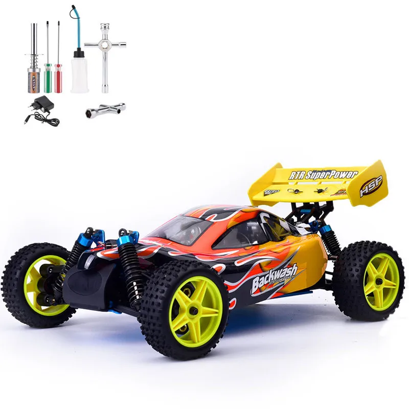 HSP Rc Truck 1/10 Scale Models Nitro Gas Power Off Road Monster Truck 94188 4wd High Speed Hobby Remote Control CarUSD 214.89/piece HSP Rc Car 1/10 Scale Models Nitro Gas Power 4wd Remote Control Car Two Speed Off Road Buggy 94166 FEATURES: Unique styling. 100% RTR factory assembled with engine and radio gear pre-installed, Makes getting started easy. Factory pre-painted polycarbonate body with decals. Pre glued tyres. Race style 5 spoke rims. Pre-trimmed spike tyres. Dust proof radio box. Responsive horizontally mounted 3kg steering servo. Four wheel center main shaft drive. Adjustable rear wing, Ride height, Camber & Toe-in/out. Adjustable linkages. Anodized aluminum shock towers front & rear. Pivot ball series. 2 Speed adjustable automatic transmission. Performance ball bearings throughout. High quality metal diff gears. Disc brake system. Large capacity spring loaded fuel tank with overflow pipe. Factory tuned 2.95cc Vertex engine. Performance enhancing exhaust system. 6 Tier cooling head. 2 stage air filter. RPM Range: 1000 - 40000 Capacity: 2.95cc : .18 cubic inch Stroke: 14mm Bore: 16.5mm Weight: 258g WHAT\'S IN THE BOX: 1x 1/10 Scale Buggy 1x 2.4ghz Remote 1x Parts Manual WHAT YOU\'LL NEED: Glow plug igniter w/Charger Nitro fuel 16% or 20% 4 x AA Batteries SAFETY: Adult supervision required for users under 14 years of age Color of the body will be sent at random.
