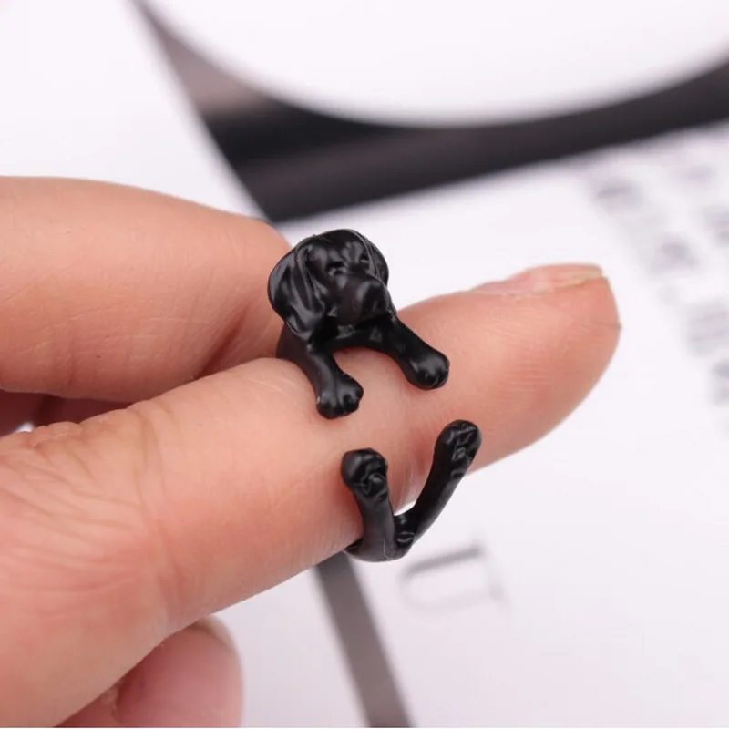 Kittenup 3 color Cute Animal Dog Labrador Open-end Rings For Men Women Fashion Jewelry Gifts