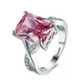 Hot Selling 18 K White Gold Anillos Jewelry Accessories Pink Square Cubic Zircon Women Ring Romantic Femme Bague Wedding PartyUSD 3.80/piece
