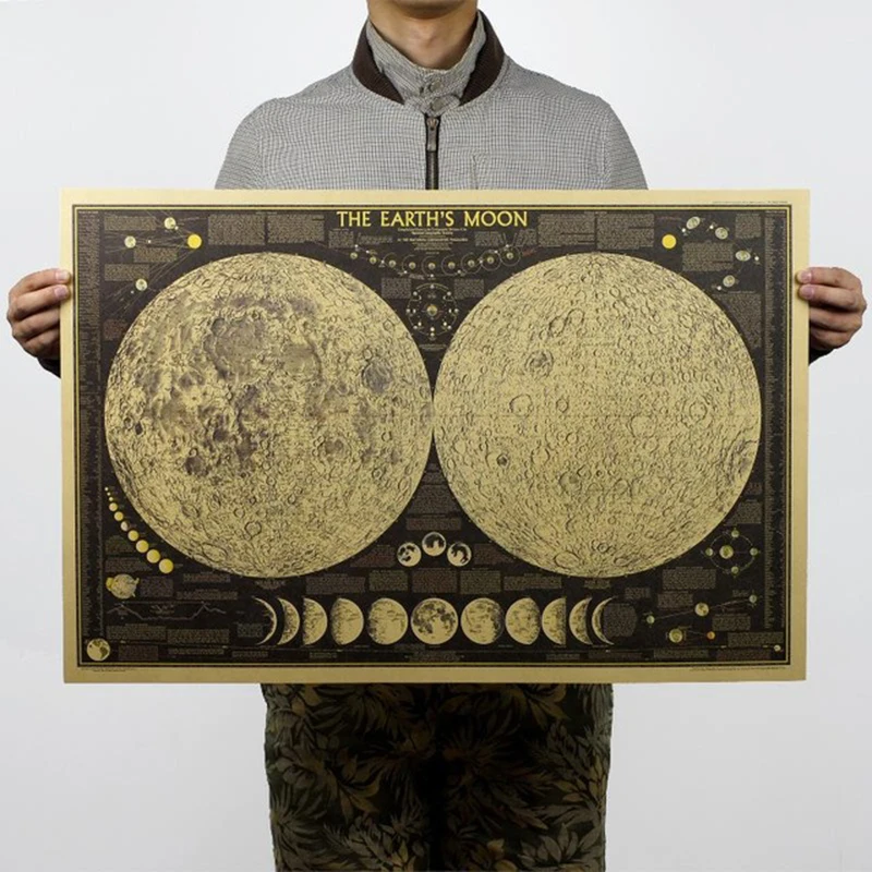 72*48cm Vintage Poster Globe World Map Moon lunar Poster Map Wall Sticker Wallpaper Art Posters Vintage Retro Paper