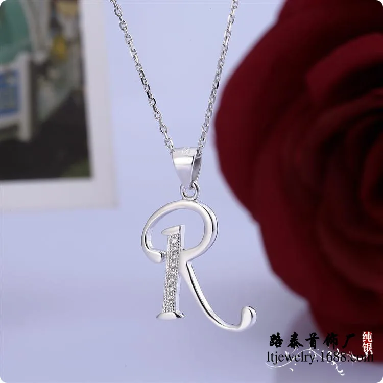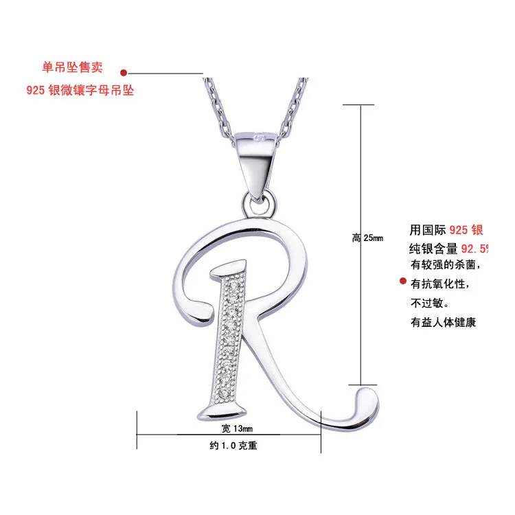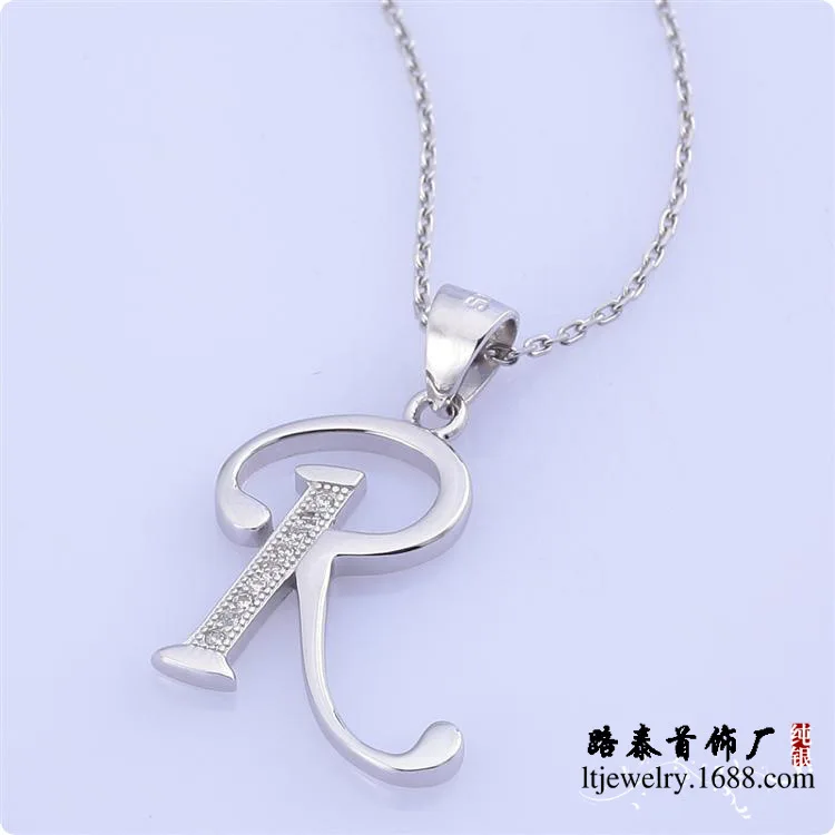 BLAL018 zircon Letter R pendant 925 silver pendants chains necklaces, free shippingUSD 10.50-13.15/piece