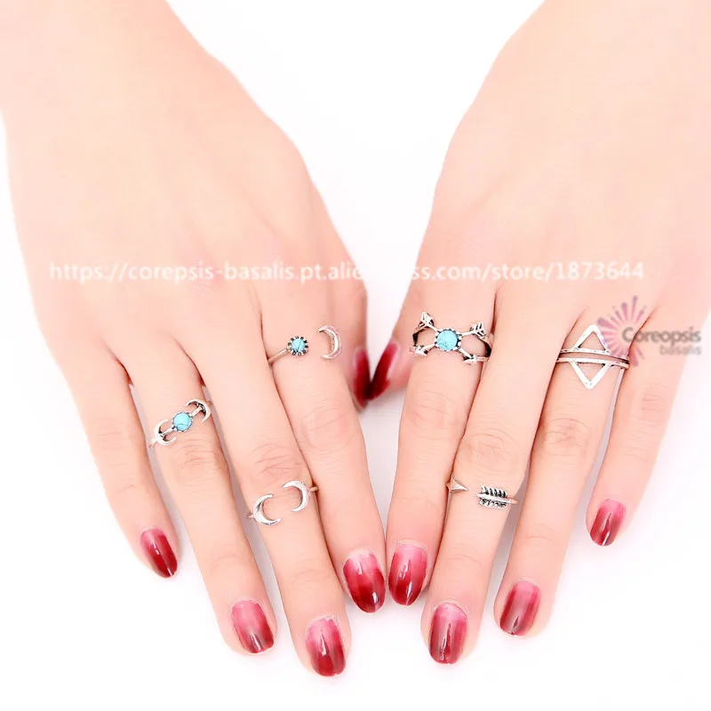 Bohemia Metal Women silver ring set punk retro Party fashion stainless steel rings stone kit combination bague new freeshipping