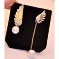 Drop Earrings Jewellery Earrings Women Pearl Tassel Long Hanging Angel Wings Asymmetric Unique Fashion Rhinestone Drop EarringsUSD 2.99/pair