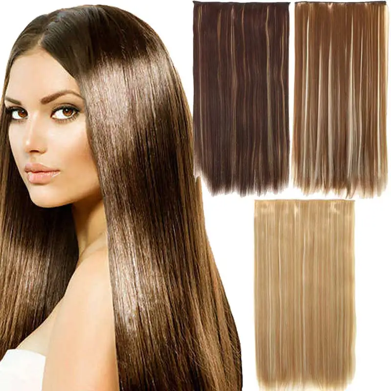 Structure: Straight Length: 24\'\' Weight: 120g Color: More than15 colors available Hair type: 100% Heat Resistant Fiber Type of extension: Clip In Hair Extension Heat friendly: Yes Application: Easy do-it-yourself application Clip in - currently, the most popular type of hair extensions. Clip in hair extension can be fitted at home in a few minutes without any help of a hair stylist. You can wear clip in hair as often as you like. Clip in method is very gentle to your own hair. These are the highest quality Heat Resistant Fiber tangle free Clip in hair extensions. Special pressure sensitive antislip hair clips are included in the packge. All the clips are already attached and silicone coated for a strong hold. Holding very well also during sport activities or dancing, you do not have to worry about possible slipping. Get yourself long and abundant hair in just 5 minutes by using our clip in hair extensions. Luxury hair extensions without damaging your own hair.
