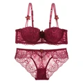 2017 half cup women\'s underwear sexy lace embroidery thin bra set high quality women\'s lace bra and panties 4 colors plus sizeUSD 16.04/set
