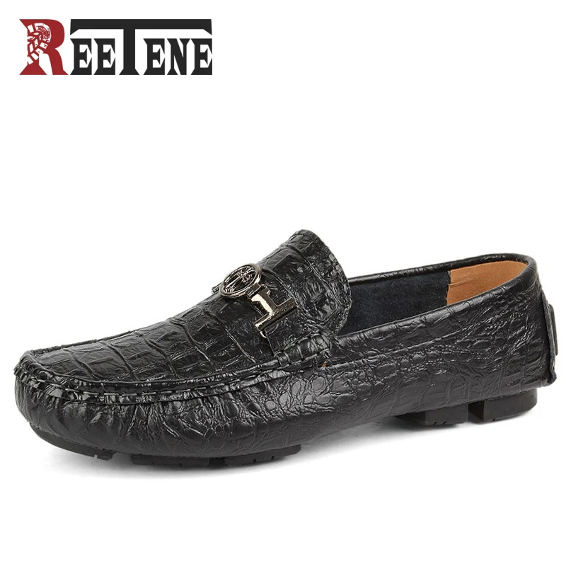 REETENE Winter Fashion Men\'s Casual Shoes Genuine Leather Loafers Warm Fur Leather Flats shoes 2017 Leather Man Casual ShoesUSD 37.50/pair