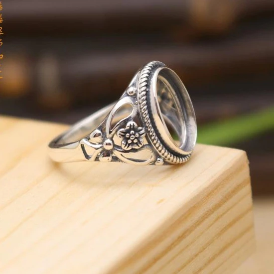 10mm round semi mount Ring Art Nouveau elegant luxury Flower 925 Silver RingUSD 15.00/piece