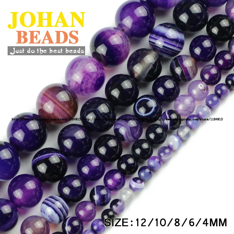 Violet Stripe banded agate beads Natural Purple Agate Stone Onyx Round Loose beads 4/6/8/10/12MM fit Jewelry bracelet making DIY