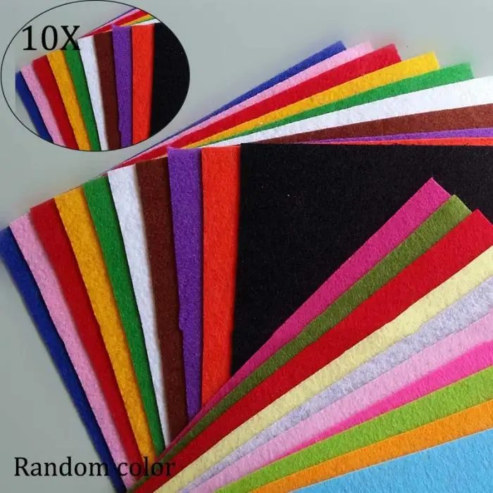 10pcs Artcrafts DIY Colorful Thickness 1mm Polyester Felt Fabric Patchwork Patchwork Cloth Handmade Sewing Cloth(Random Color)