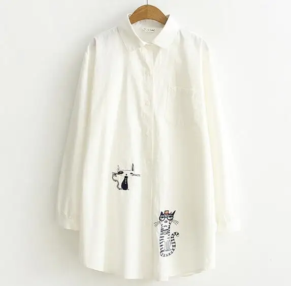 2017 spring cute Beard cat embroidery Single-breasted shirt blouse female mori girl