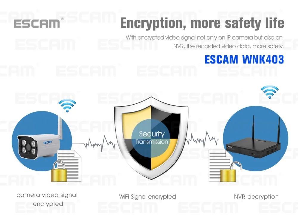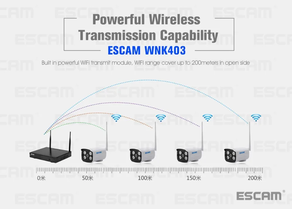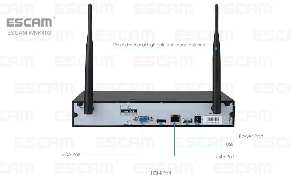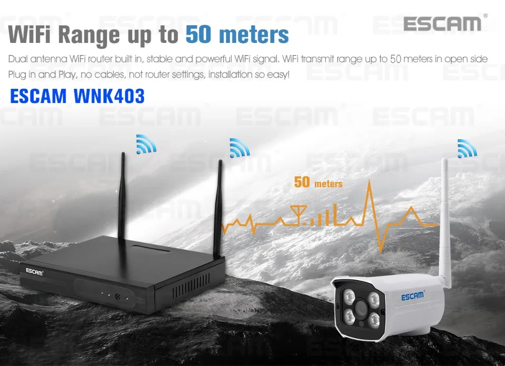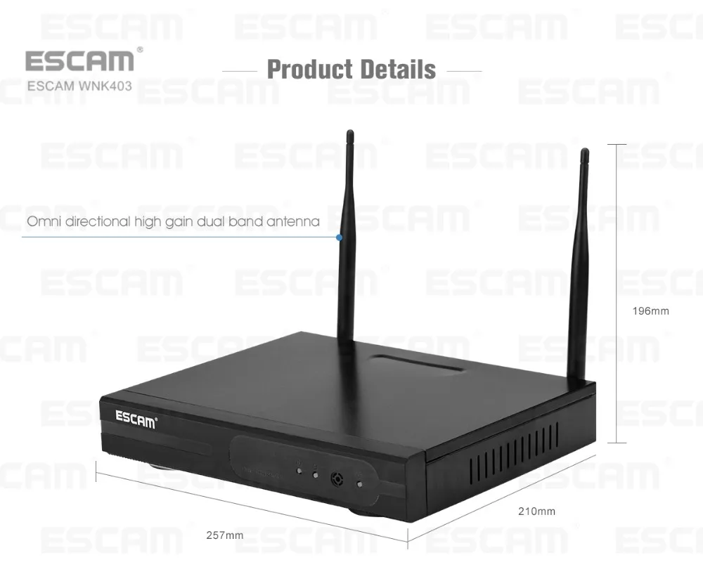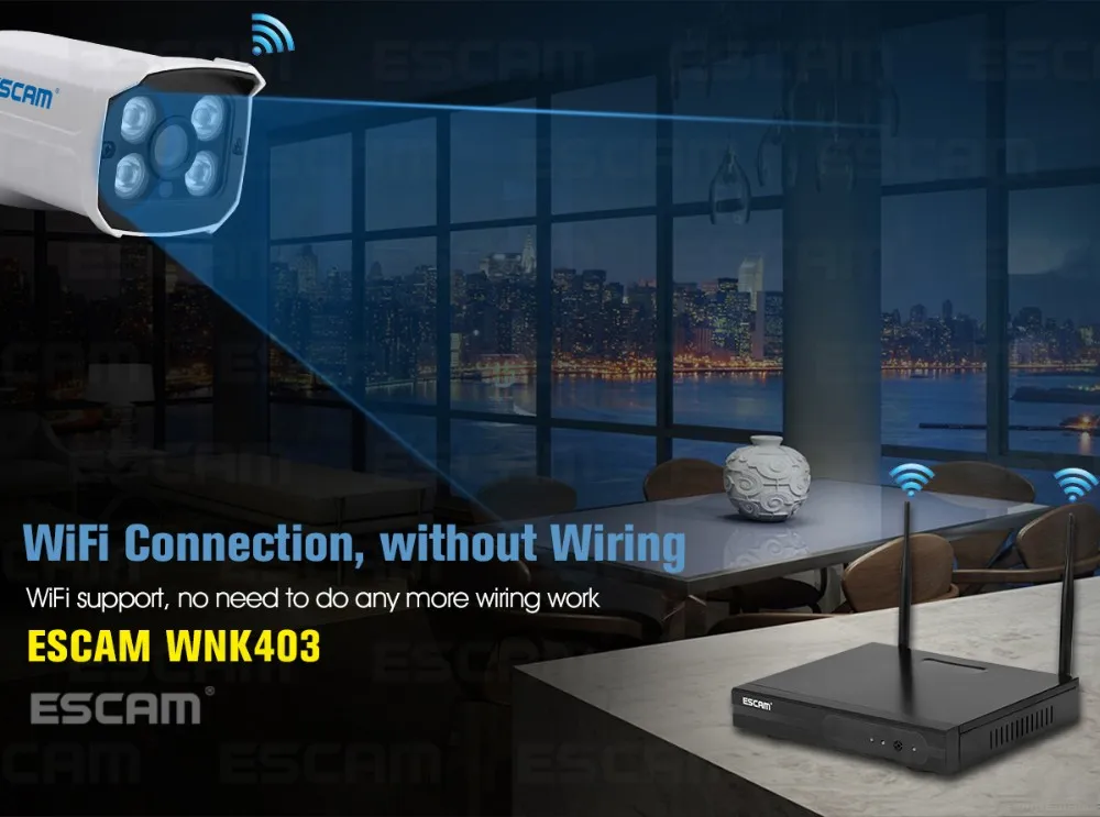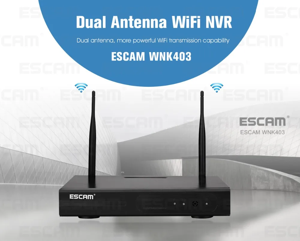 ESCAM 4CH WIFI NVR KIT WNK403 Wireless NVR Kit P2P 720P HD Outdoor IR Night Vision Security IP Camera WIFI CCTV System | Wireless NVR Specification ESCAM WNK403 | ||