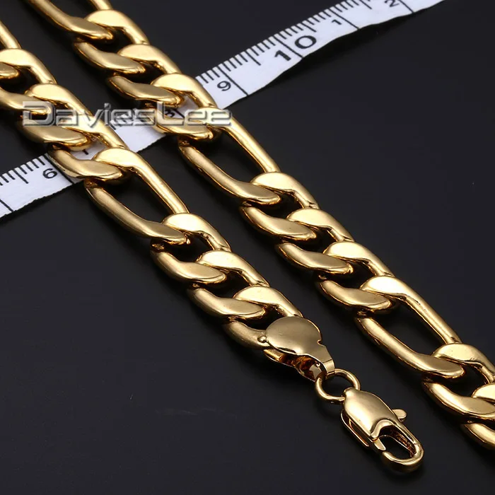 Davieslee 18-36INCH/12MM CUT CURB CUBAN Chain Necklace Mens Chain Womens Chain Gold Filled Jewelry Party Daily Wear DLGN270USD 19.98-28.98/piece