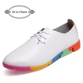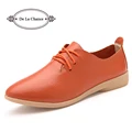De La Chance Plus Size Ladies Loafer Women Flats Platform Casual Shoes Moccasins Genuine Leather Lace-Up Work Shoes White BlackUSD 27.50/pair