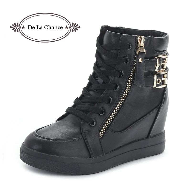 High Top Platform Women Shoes 2017 Spring Autumn Korean Buckle Zipper Hidden Heel Fashion Wedge Casual Shoes Flats Woman Black hiddenwedge height:4cm platform height:3cm