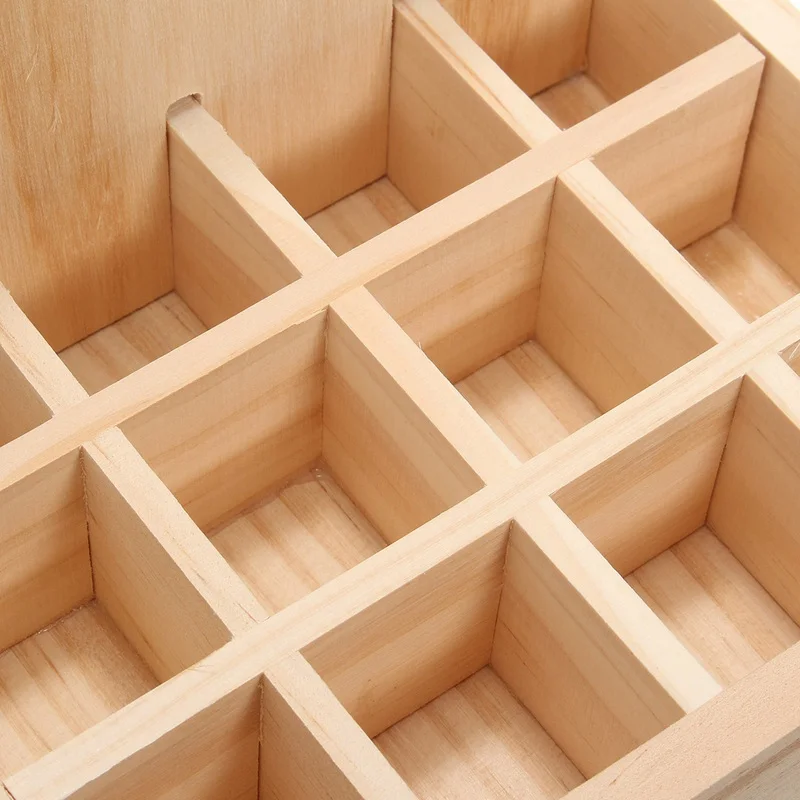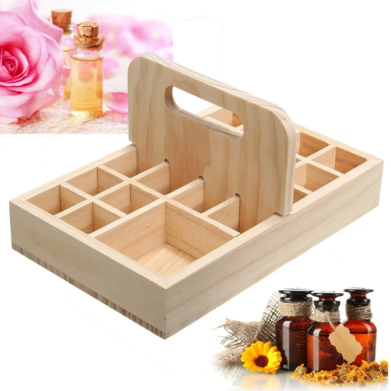 1. Simple Elegant Design, 21 grids wooden essential oil storage case.