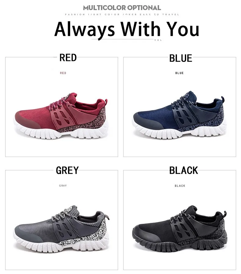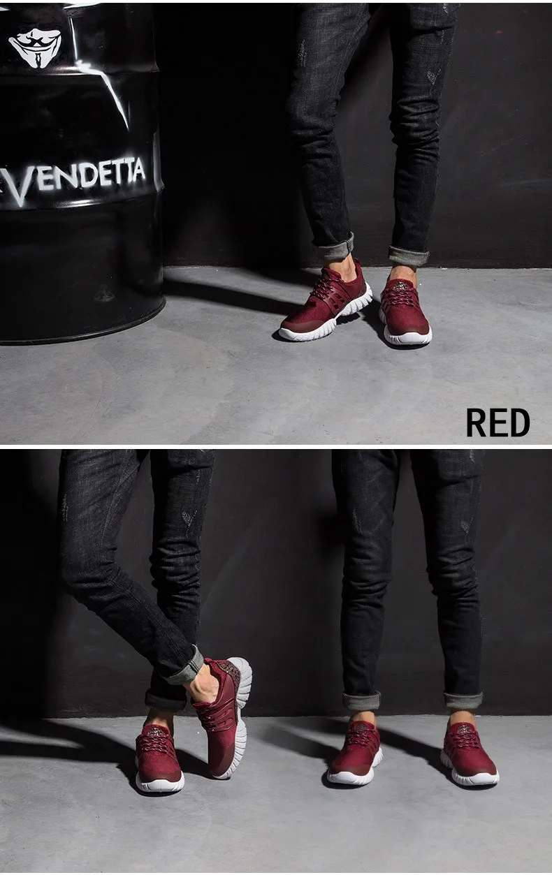 1.100%Brand New 2.Color:Black/blue/grey/red sneaker 3.Size: CNsize 39-44 . Please allow 1-2cm differences due to manual measurement (All measurement in cm and please note 1cm=0.39inch) 4. Package: 1 pair brand new shoes without box 5. The size you choose is US size, the shoes size we send is marked the equal CN size. 6.Please choose your size according to your feet length 7.Due to the different display and shooting angel it may be a little color difference from the real one.