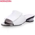 MORAZORA Plus size 33-43 high quality 2017 genuine leather women slippers square low heel summer solid color sandals women shoesUSD 67.30/pair