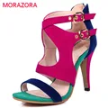MORAZORA Mixed colors shoes women sandals peep toe Faux Suede summer shoes high heels high quality party wedding shoes womanUSD 56.50/pair