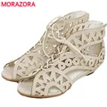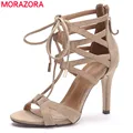 MORAZORA 2017 summer new high quality sheepskin genuine leather women sandals gladiator high heels party wedding shoes woman USD 76.60/pair