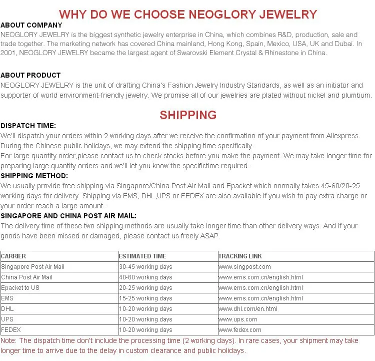 | Brand | Neoglory Jewelry | Material | gold plated, Platinum Plated |