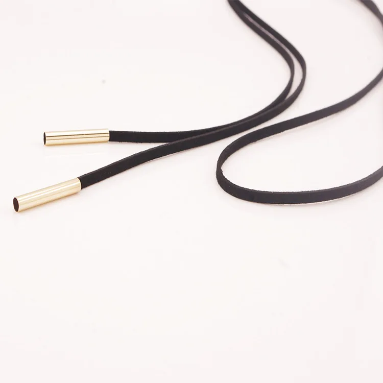 New Fashion Rope Necklace for Women Long Black Leather Rope Gold Tube False choker Collar Necklace Women collier Bijoux B0040