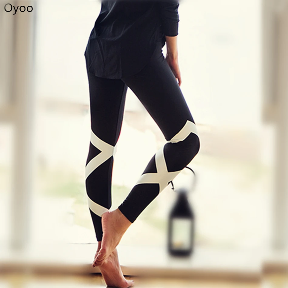 Oyoo Fold Over Waistband Cut-out Cross Black Yoga Pants Cute Girly Strappy Yoga Fitness Leggings Gym Workout Ourfit XLUSD 18.72/piece
