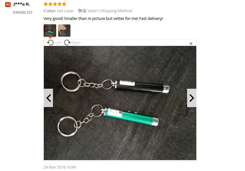 Note:In order to post your parcel ASAP, the color will be choose by random. So please kindly understanding we do not offercolor choice.Thanks! Item Description: Max Output: 5m W. Wavelength: 650mm /-10. Laser Color: Red Pen Length: 5.5cm Battery Type: 3*AG3 battery(included). Color: Red/Silver/Black/Blue(send in random). Attention :Do not irradiate on eye directly. Package include: 1 * Red Laser Pointer Pen