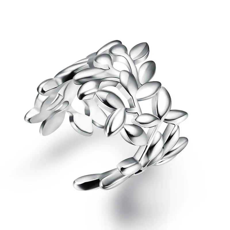 Real 925 Sterling Silver Leaf Crystal Rings for Women Lady Fashion Wedding Rings Adjustable Ring sterling-silver-jewelry
