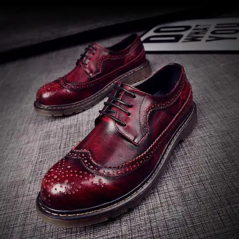 British style Men Dress shoes Genuine leather Flats Pointed toe Casual Fashion Brogue Shoes Spring/Autumn Male Oxfords shoes 1.9USD 88.19/pair