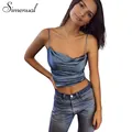 Simenual Draped v neck sexy hot women camis blackless crop top summer halter camisole ladies club wear blingbling short tanksUSD 11.41/piece