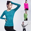 Women running shirt high quality gym sport long sleeve shirt tops 4colors tight yoga fitness quick-drying sports jacket USD 12.85/piece Women high electic Yoga shirt Long Sleeve Quick-Drying breathable Slim Fitness Workout tight Clothing gym Sport running jacket