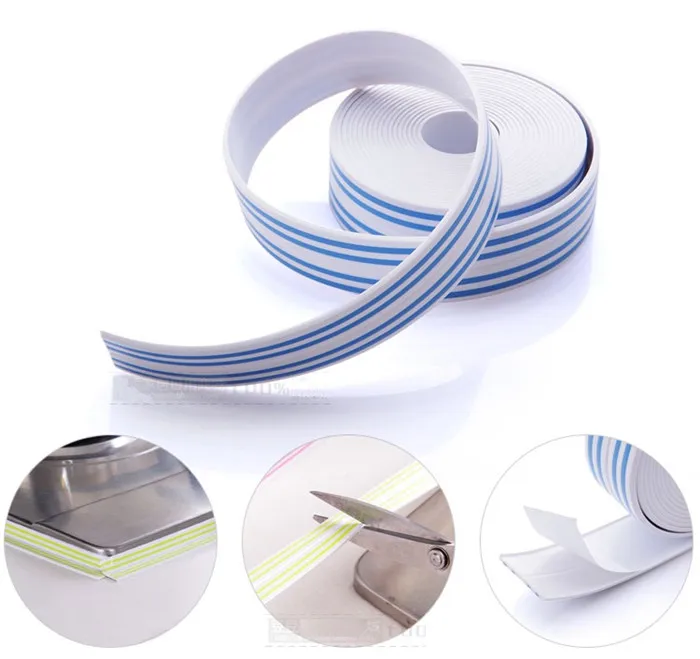 Kitchen waterproof Mildew proof tape PVC Gap Sealing Tape for Kitchen Barthroom Paste Corner Seam Moisture Protector *linear design, folds, twists and turns to a 90 degree angle