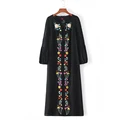 2017 Brand Black Maxi Long Floral Embroidery Dress Lantern Sleeve O Neck Casual Women Dresses Brand vestido longoQ-AAZZ8379USD 30.09/piece