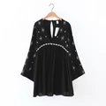 2017 Birds Embroidery Women Black Dresses Backless O Neck Long Sleeve Short Mini Dress Casual brand sundress female LYZZ5202USD 19.80/piece