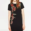 2017 Women Spring Floral Embroidery Dress O Neck Black Short Sleeve Casual Long Maxi Dresses Summer DWDD8143USD 22.88/piece