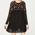 2017 Spring Women Black Dress O Neck Long Sleeve Hem Ruffles Floral Embroidery chiffon Dresses Plus Size XQB63018USD 23.48/piece
