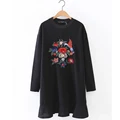 Fashion 2017 Spring Floral Embroidery Dress O-neck Long Sleeve Ruched Black vestido Women Brand Casual Dresses Q-NNWM1688USD 18.35/piece