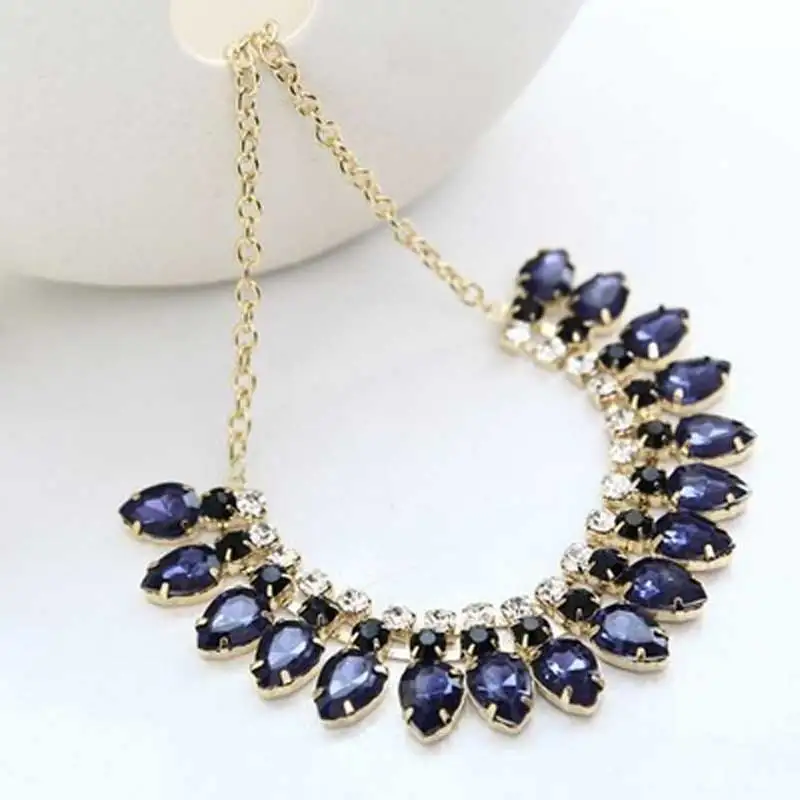 2016 fashion summer water drop vintage statement necklaces for women crystal gold plated choker collar necklace chain jewelry