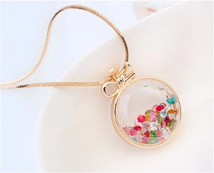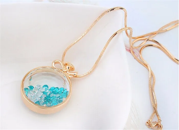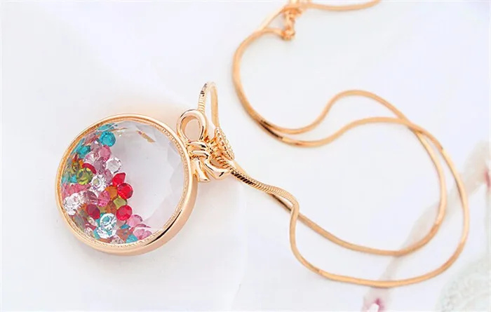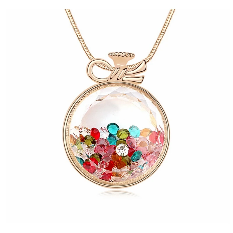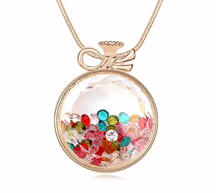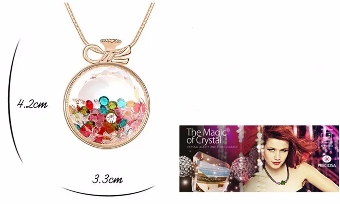 Austrian Pink Crystal Heart Pendant Necklace Chain Bridesmaid Gifts Wedding Jewelry Girlfriends Mother Necklace Vintage SautoirUSD 18.99/piece Product Detail This item is totally polished by hand many times by a master who has 5 or more years polishing experience, which can make sure that the surface of each item is as smooth as possible. The inaccuracy is less than 0.3mm, which can protect your soft skin well. All of my products are realgold plated and are treated by color protection. We do not use chemical formulations to get the gold plated metal, therefore, the gold plated thickness of all of my products is 5 times thicker than other similar domestic products. We can know from the above that our gold plated cost is 10 times higher than other similar products in the market. We always think it is worth providing you with more environmental and healthy products although it costs more than other simliar items in the market. The simple and unqiue design is perfect for your elegant look, which is suitable for you to wear at any occasion and can be matched with any outfit. Boys, men or husband buy this unique design item for your girlfriend, lover or wife to make her smile, great gifts on wedding anniversary day ,Valentine\'s Day or Mother \'s Day. Stone : Austrian Crystal Main Metal: Real Gold Plated Alloy Total Chain Length: 80cm 5cm ( 33.46 " ) ( Double Chain ) Pendant Length: 4.2cm Pendant Width: 3.3cm Total Weight: 42.80Gram Stone Color : Blue /White / Multicolored Stone Shape : Round Product Picture