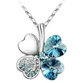 Four-leaf Clover Necklace Blue Jewelry Necklaces Women Austrian Crystal Party Jewellery Lady Bridal Wedding Necklace 10 ColorsUSD 16.99/piece
