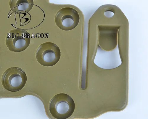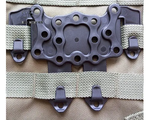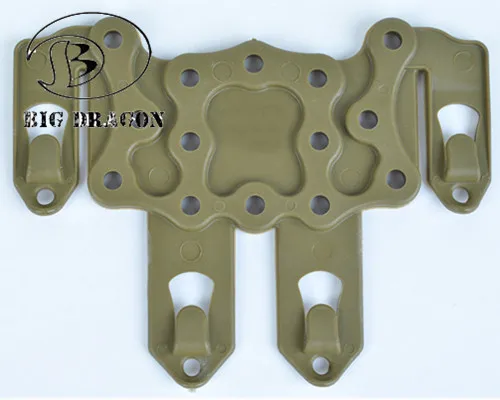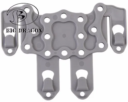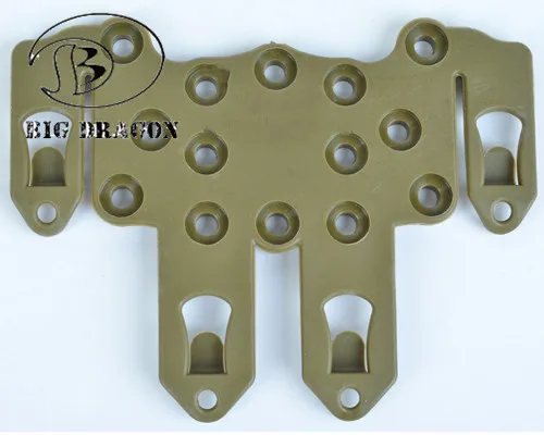 2Pcs/Lot Plastic CQC Platform Molle Multifunctional Hanger Holster Tactical Military High Density Nylon Utility Belt Attaching Features: Made by high density polymer. Molle mounting platform for attaching holster, accessories and magazine cases. Holster adjust to any angle. Able to attach to duty belt, any molle webbing vest, bag or backpack,etc. Specifications: Material:Nylon Weight:60g Color:Black,FG,Tan