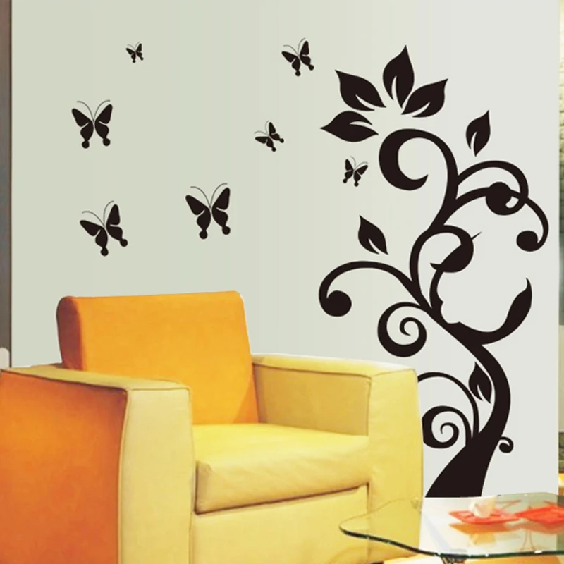 Black Leaves Flower Vine Butterflies Wall Sticker Decal Vinyl Home Paper Art Picture DIY Murals Living Room Bedroom Decoration