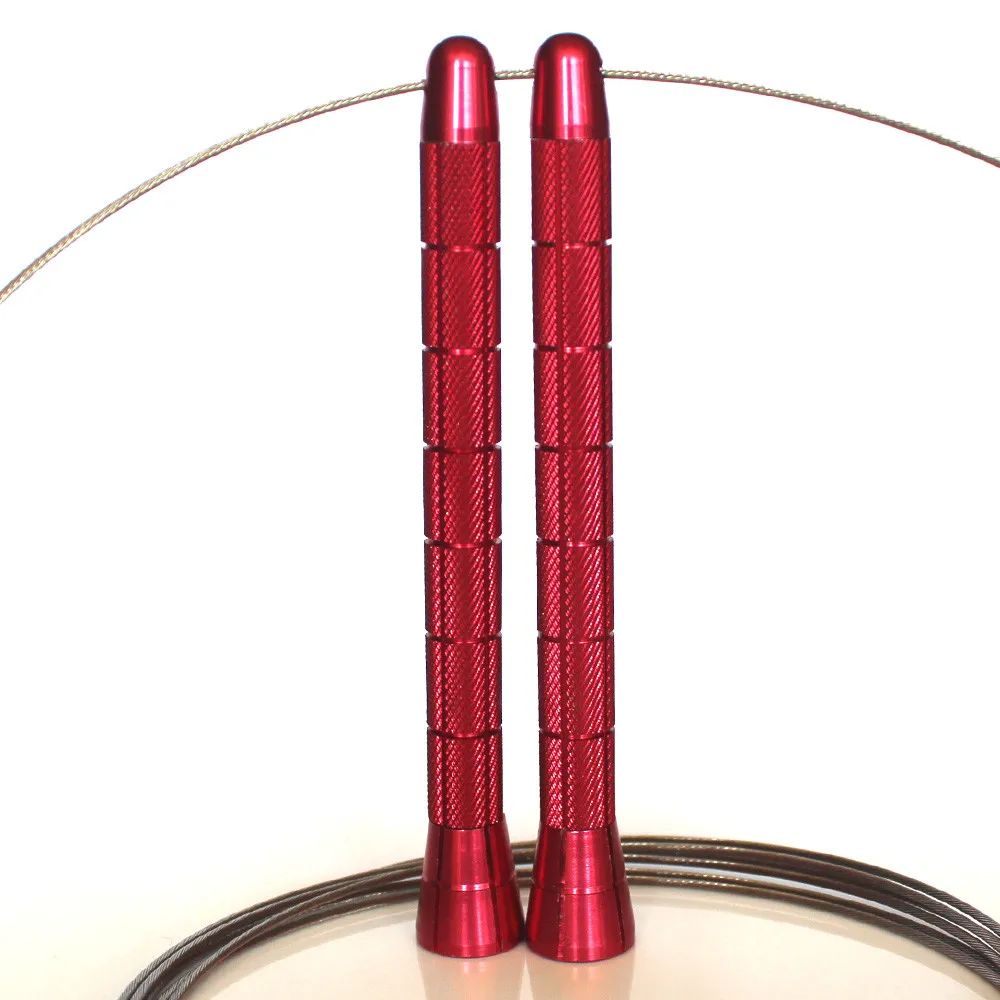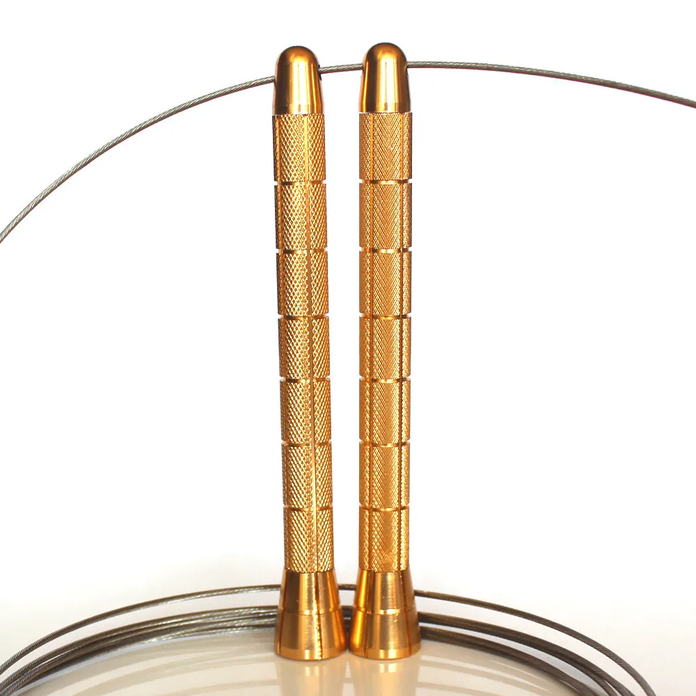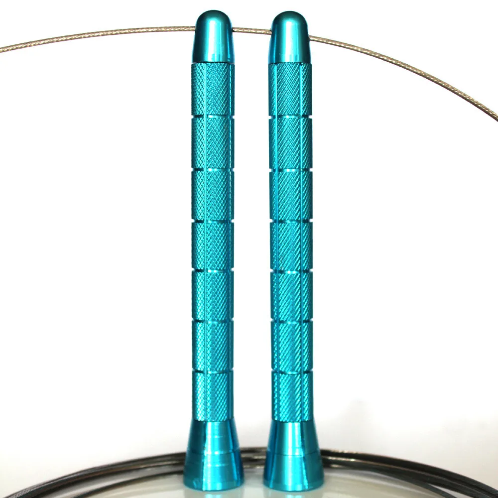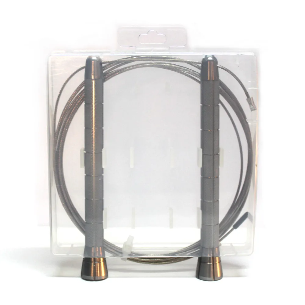 "Rocket" Jump Rope Professional Athletics Skipping With Ball Bearing Metal Handle Crossfit Fitness Equipment Skipping(add one pcs replacement cable 2.0mm diameter) Skipping is one of the best cardio vascular exercises that produces results, is cheap and can be done anywhere, anytime.Ideal for shedding weight fast, toning up and maintaining muscle tone. Skipping ropes are an excellent tool for any fitness level or goal. Note: Before jumping, check the length of the rope is appropriate, and screws are tightened? Speed Jump Rope, patent product:201630198301X How to size your jump rope: 1.Stand on the middle of the rope with one foot 2.Pull the handles straight up making sure the rope is tight and even 3.For beginners,the top of the handles should reach close to the shoulder 4.For experienced jumpers,the top of the handles should reach the armpit or below 5.For double unders,the rope should be shorter,Experiment to see what works for you.For most people the top of the handles should reach the chest line for best double under performance 6.If the handles extend beyond your shoulders,your rope needs to be shortened 7.You can temporarily shorten your rope by loosening,moving and tightening the screws on each side. 8.To permanently shorten your rope,you can cut the end pieces How to use your jump rope: 1. Look straight ahead to maintain balance. 2. Keep body upright and balanced with the weight on the balls of the feet. 3. Jump only high enough to clear the rope (1 inch off the ground). 4. Land lightly on the balls of your feet. 5. Keep your elbows close to your sides,pointing down at a 45-degree angle. 6.Never sacrifice good jumping form for speed.Progress slowly. Metal Handles,Rocket Modeling! Cable Diameter 1.5mm,More faster! And add one pcs replacement cable 2.0mm diameter(coated in PU for a durable and smooth) With Skipping Dedicated Box!