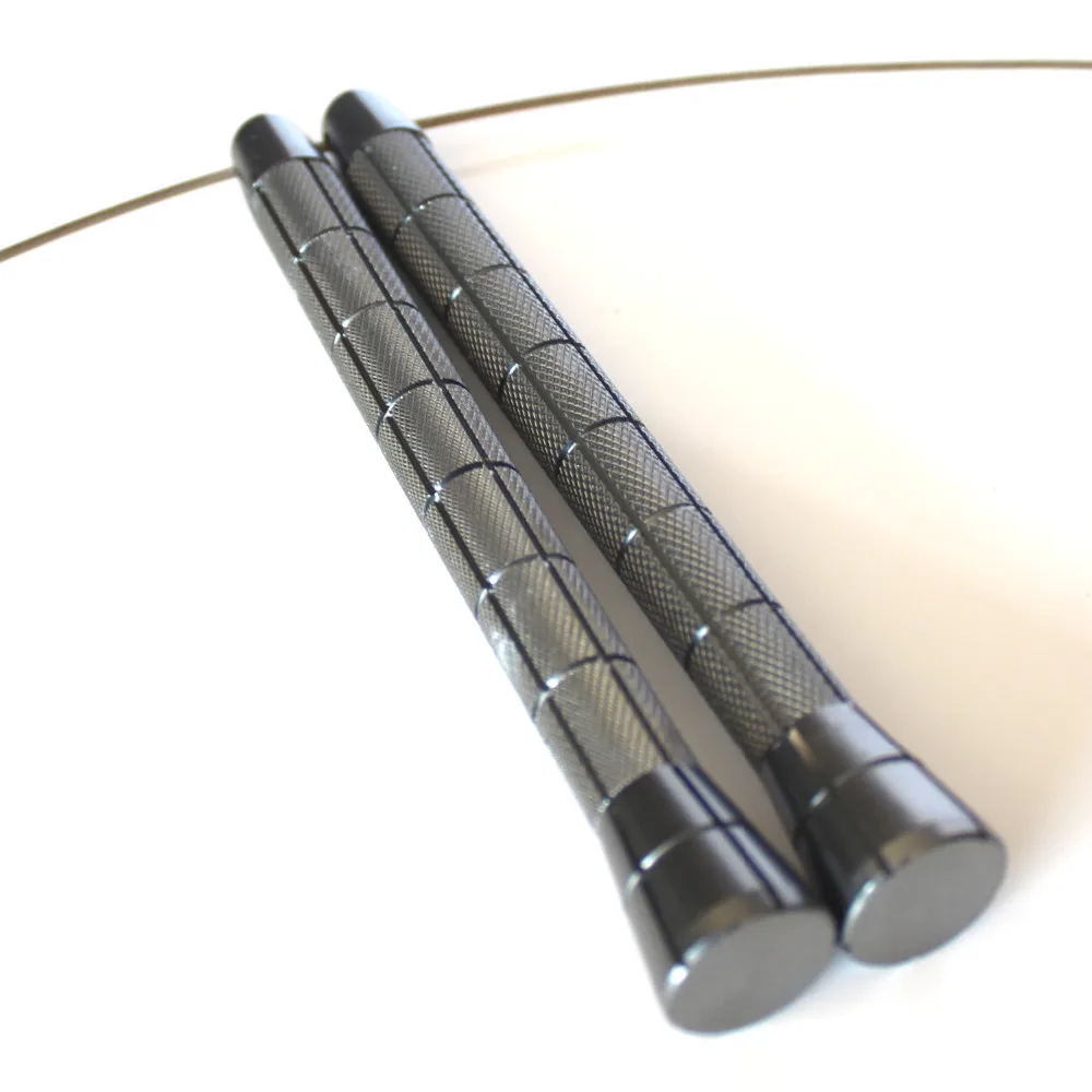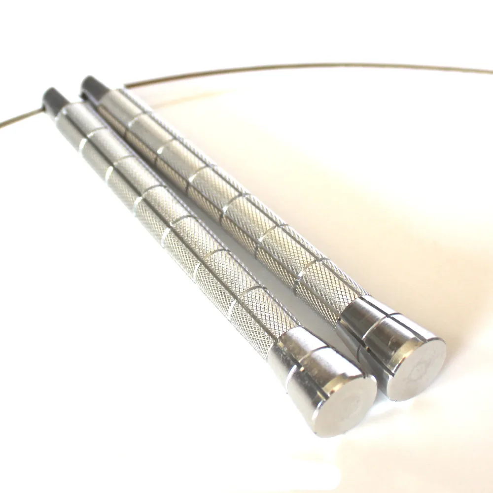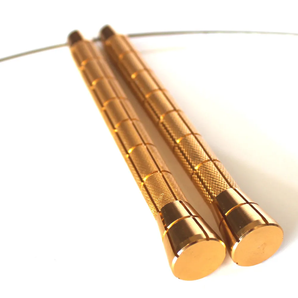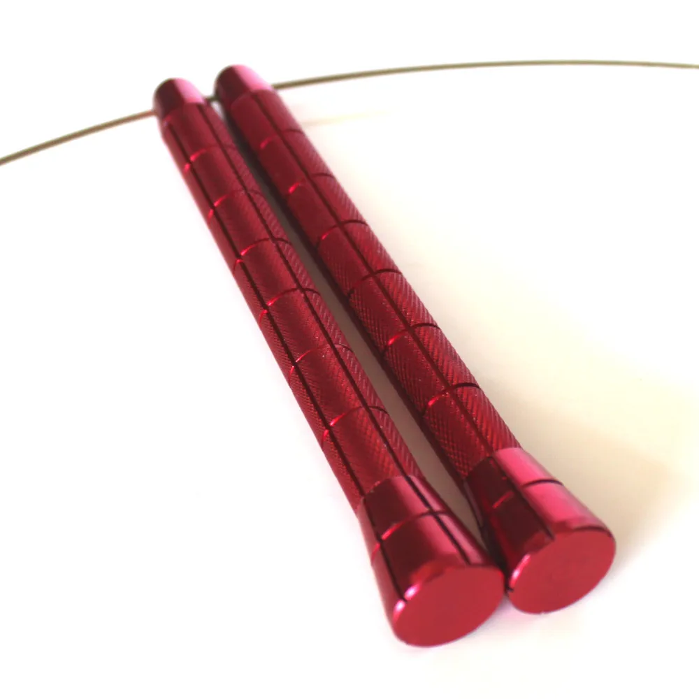 "Rocket" Jump Rope Professional Athletics Skipping With Ball Bearing Metal Handle Crossfit Fitness Equipment Skipping(add one pcs replacement cable 2.0mm diameter) Skipping is one of the best cardio vascular exercises that produces results, is cheap and can be done anywhere, anytime.Ideal for shedding weight fast, toning up and maintaining muscle tone. Skipping ropes are an excellent tool for any fitness level or goal. Note: Before jumping, check the length of the rope is appropriate, and screws are tightened? Speed Jump Rope, patent product:201630198301X How to size your jump rope: 1.Stand on the middle of the rope with one foot 2.Pull the handles straight up making sure the rope is tight and even 3.For beginners,the top of the handles should reach close to the shoulder 4.For experienced jumpers,the top of the handles should reach the armpit or below 5.For double unders,the rope should be shorter,Experiment to see what works for you.For most people the top of the handles should reach the chest line for best double under performance 6.If the handles extend beyond your shoulders,your rope needs to be shortened 7.You can temporarily shorten your rope by loosening,moving and tightening the screws on each side. 8.To permanently shorten your rope,you can cut the end pieces How to use your jump rope: 1. Look straight ahead to maintain balance. 2. Keep body upright and balanced with the weight on the balls of the feet. 3. Jump only high enough to clear the rope (1 inch off the ground). 4. Land lightly on the balls of your feet. 5. Keep your elbows close to your sides,pointing down at a 45-degree angle. 6.Never sacrifice good jumping form for speed.Progress slowly. Metal Handles,Rocket Modeling! Cable Diameter 1.5mm,More faster! And add one pcs replacement cable 2.0mm diameter(coated in PU for a durable and smooth) With Skipping Dedicated Box!