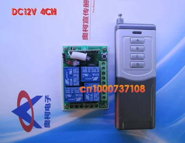 About Learning and clearing Method:Learning:· Press the learning key, it means the controller putting in the learning state when the indicator OFF, then please press any buttons of the remote control to transmit signals, the indicator will flash for 3 times,which means successfully studied.· After pressing any buttons of the remote control to transmit signal, the indicator didnt flash, 10 seconds later it still recovers to normally on, it means study unsuccessfully.Clearning: Hold press learning button about 8 seconds,,indicator from OFF to ON,then press remote ,receiver did not work ,it means clearning code successful.Pay attention:· The default setting of output way is Momentary; If you need other output way can leave a message to change it for you before the delivery.· Here is the 4 Channel switch and 4-button remote control .you can choose the working way as you need.· The theoretical distance is 20-- 100m, which shall be operated in an open ground; no barriers and no any interference. However, in actual operation, it is hindered by trees, walls or other obstacles, or interfered by other signals. Therefore, the actual distance cannot reach 100m. If you need longer range, please choose other series of remote control, such as 1000m/3000ft; or you can add the External Extend Antenna or Transponder on the receiver to extend the range.Package Include:· 1 x Receiver:AK-RK04S-12-C (with cover)· 1 x Transmitter: AK-2000-4 (with battery)PHOTO