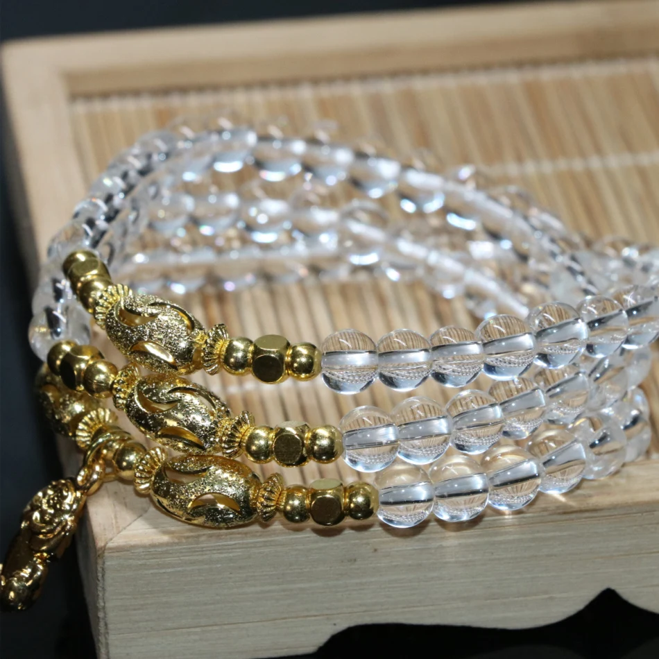 High grade gold-plated pendant elegant white electroplate crystal multilayer bracelets for women 6mm round beads jewelry B2253