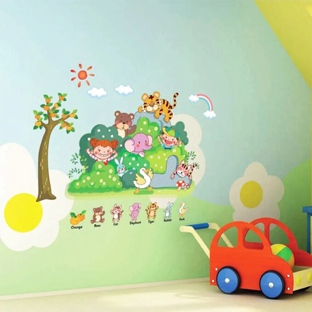 Jungle Wild Cartoon Zoo Animal Wall Sticker For Kindergarten and children Room Removable quotes 3D Wall Stickers for kids rooms